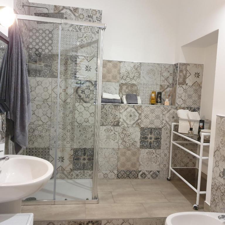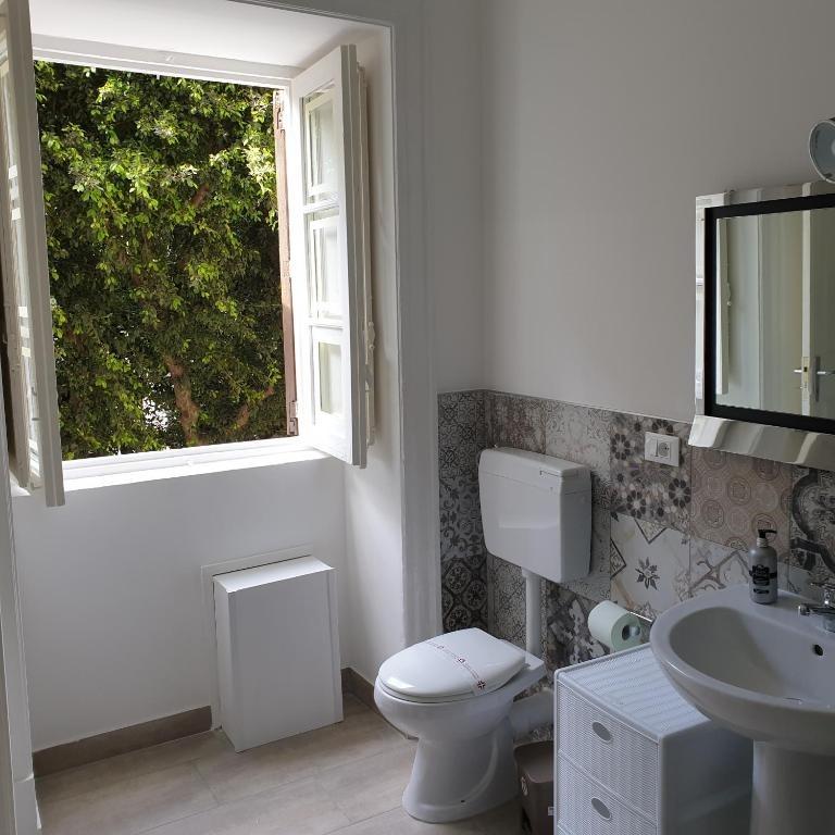 The apartment features three spacious rooms, each with its own private bathroom, air conditioning, flat-screen TV, and electrical outlets by the bed. Two of the rooms overlook Via Volturno, providing charming glimpses and a partial view of the Teatro Massimo, while the third room opens onto a quiet internal courtyard with a blooming terrace, ensuring peace and relaxation.